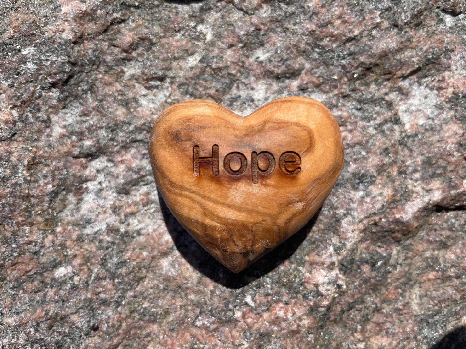 Sag es mit Herz | Hope | Holzherz - Aus Olivenholz